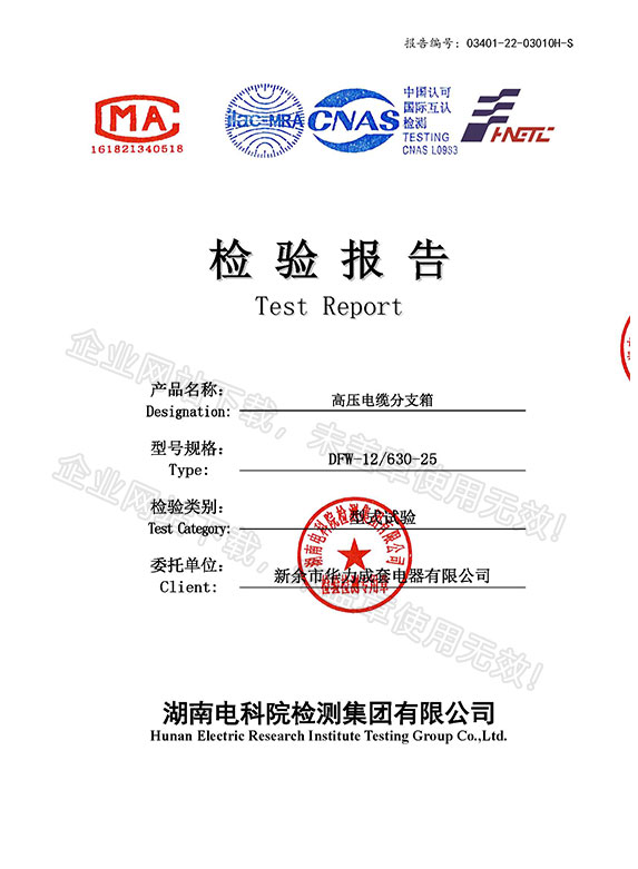 高压电缆分支箱实验报告查看详情>>